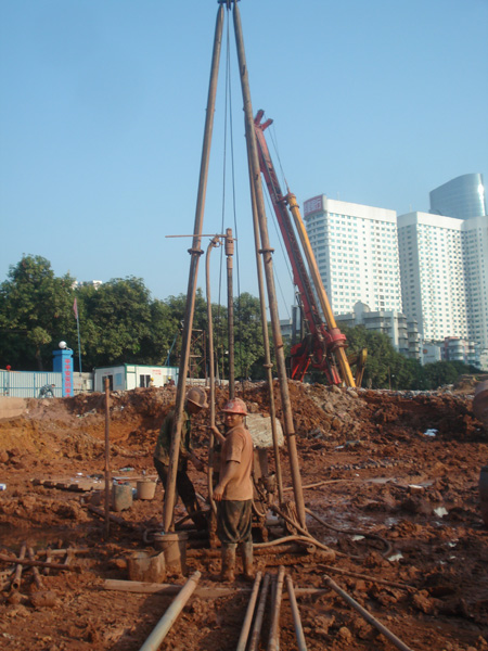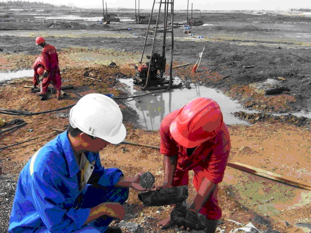 安徽矿山勘察项目:勘察技术人员对取出的土样进行辨析
